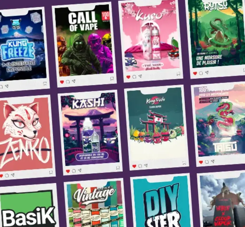 Découvrez les e-liquides KF STUDIO, inspirés de la culture japonaise, alliant tradition et modernité. Disponibles en différents formats et taux de nicotine, ils s'adaptent parfaitement à toutes les typologies de vapoteur. Leur packaging distinctif et attrayant permet une identification rapide en linéaire, facilitant ainsi la vente. Parmi nos best-sellers, retrouvez la gamme KUNG FRUITS, célèbre pour ses ninjas fruités personnifiés.